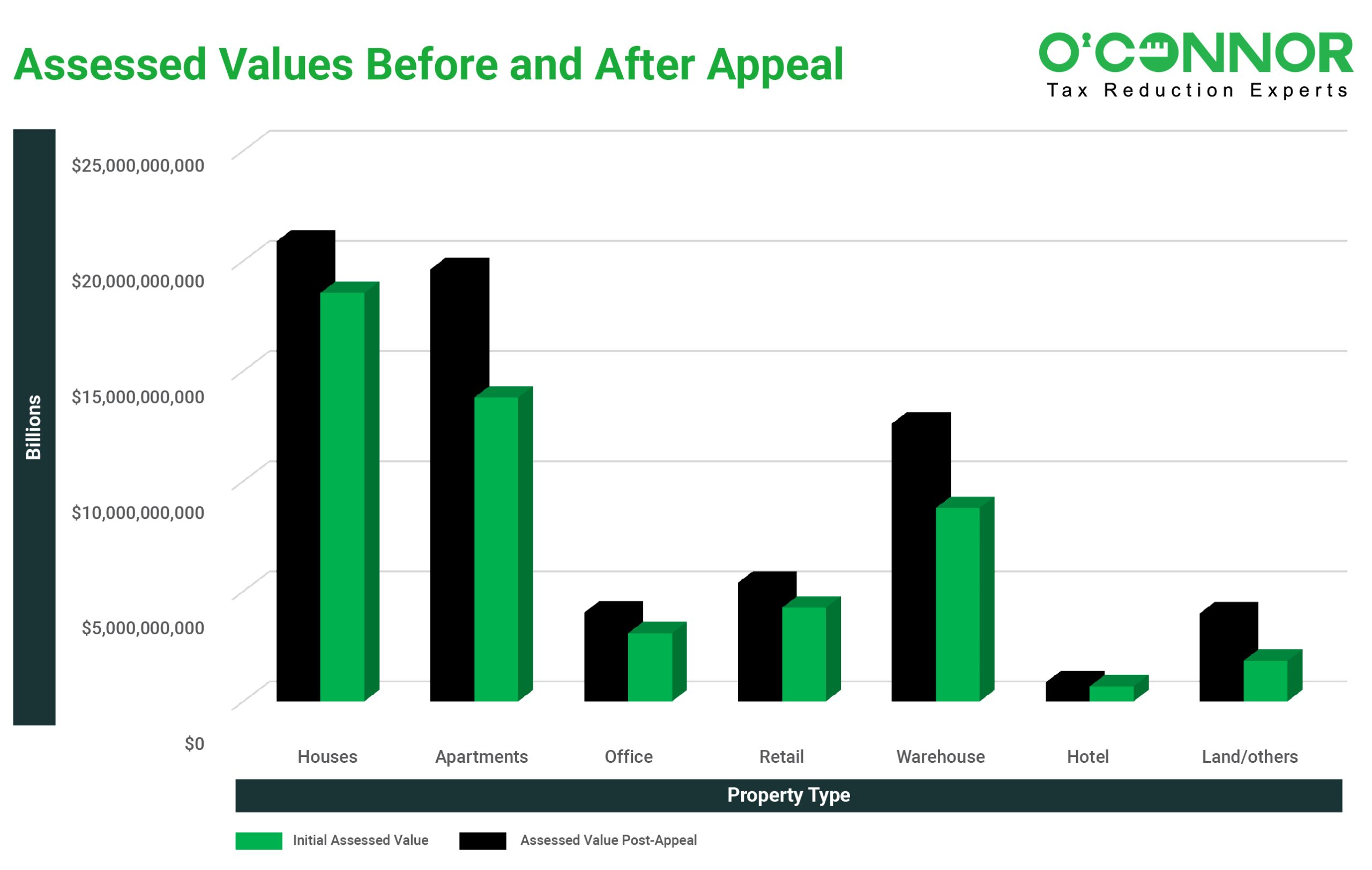 O’Connor is among the largest property tax consulting firms in the United States, providing residential property tax reduction services in Texas, Illinois, and Georgia, as well as commercial property tax reduction services across the United States. O’Connor’s team of professionals possess the resources and market expertise in the areas of property tax, cost segregation, commercial and residential real estate appraisals. The firm was founded in 1974 and employs more than 600 professionals worldwide. O’Connor’s core focus is enriching the lives of property owners through cost effective tax reduction.